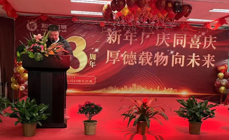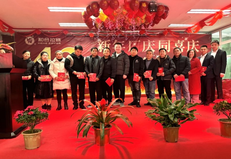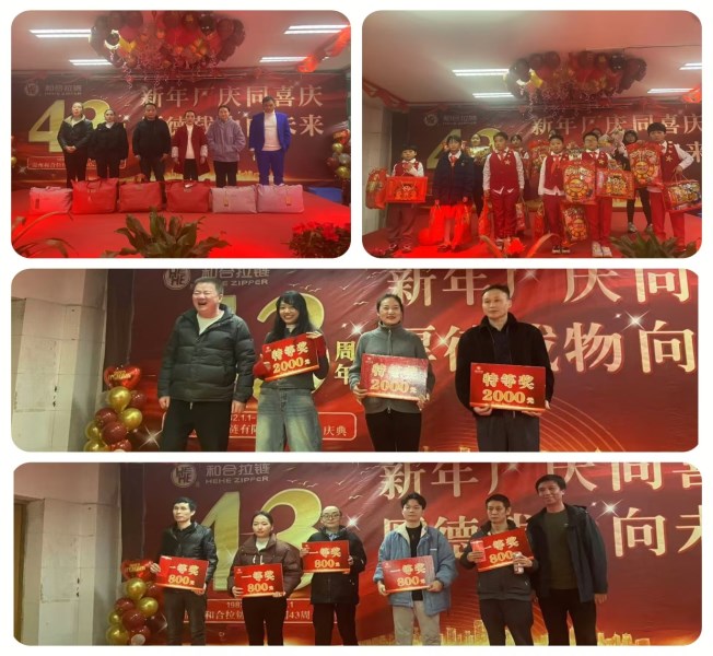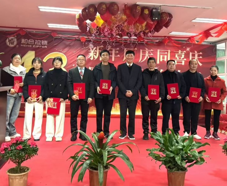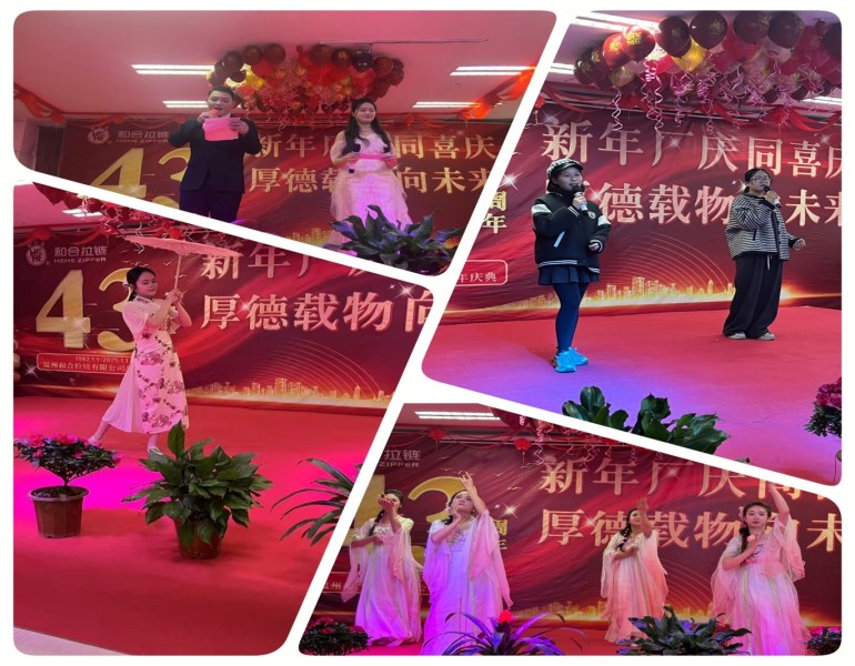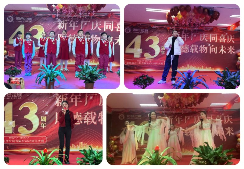 2024年12月31日下午,冬日暖陽,溫州和合拉鏈有限公司員工餐廳內張燈結彩,喜氣洋洋,搭建的舞臺上“新年廠慶同喜慶、厚德載物向未來”“43周年”等文字十分醒目。公司全體員工、員工家屬及部分合作伙伴代表等550人歡聚一堂,在這里歡聲辭舊歲,笑語迎新年,共同慶祝溫州和合拉鏈有限公司43歲的生日和新年元旦的到來。
