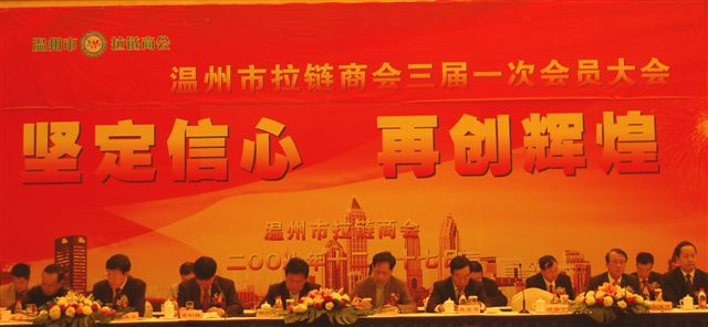 會(huì)議還選舉產(chǎn)生了以陳建設(shè)為會(huì)長、葉榮虎為秘書長的新一屆理事會(huì)并一致同意,聘任黃松桂、葉克連為商會(huì)三屆理事會(huì)名譽(yù)會(huì)長。會(huì)上,溫州市工商聯(lián)領(lǐng)導(dǎo)和中國拉鏈協(xié)會(huì)理事長施能輝先生作了精彩發(fā)言。
